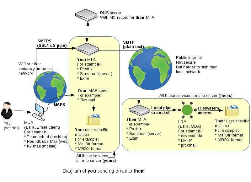 www).email.When you compose on email on your host machine and hit ‘send’, you begin an interaction with your email server. This will require authentication. Postfix needs to be configured to accept encryption.